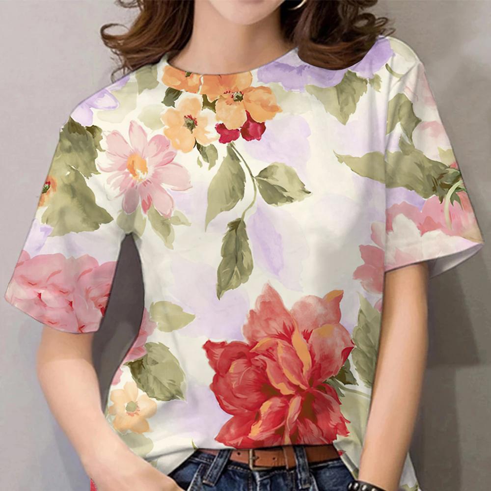 2024 Топ, женская футболка с цветочным принтом, женская футболка большого размера, популярная одежда, женская одежда, футболки с короткими рукавами, блузка 5XL