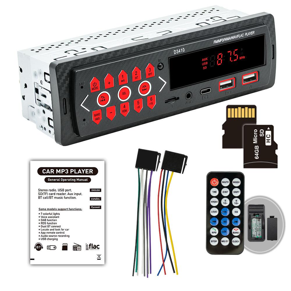 BQCC Автомобильный FM-радио, стерео, мультимедийный проигрыватель, цифровой Bluetooth FM-передатчик, вход AUX, USB-порт для зарядки D3410