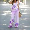 BITCED Женский повседневный топ из двух частей с принтом и брюками на резинке на талии, женский костюм