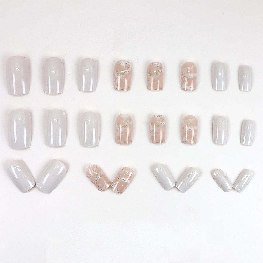 24 шт. средних и длинных квадратных простых пятен золотая фольга розовый белый белый роскошный элегантный маникюр накладные ногти