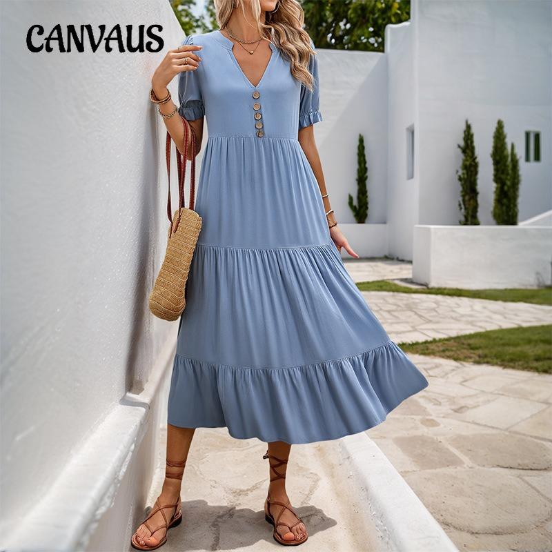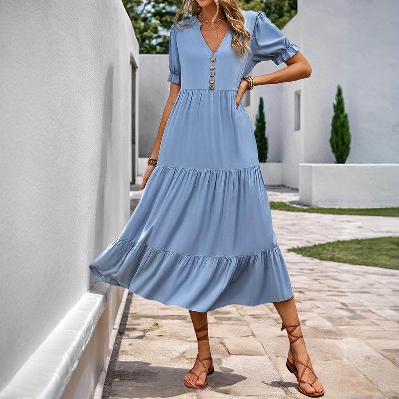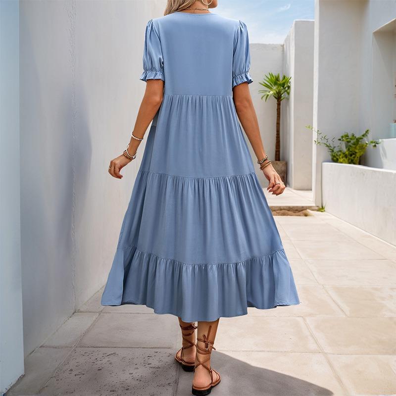 Новые летние женские платья A-swing однотонного цвета средней длины с воротником-стойкой