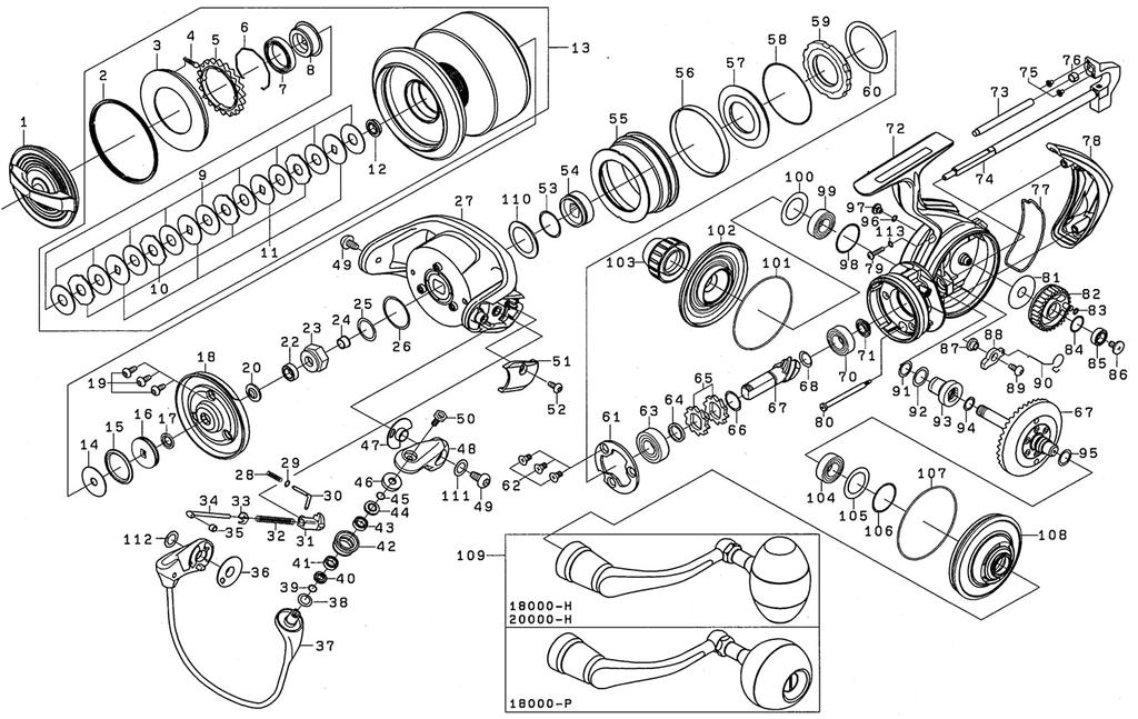 Daiwa Оригинальные детали 20 Saltiga Handle Cap Номер детали 103 Код детали 151226 20000-H