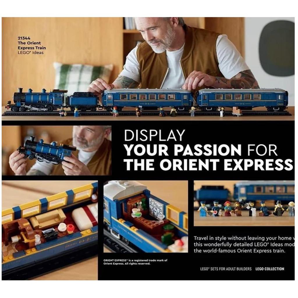 Пока я погружаюсь в создание LEGO Ideas Orient Express (21344) модель, я перенесся в золотой век путешествий на поезде. Демонстрационная модель, позволяющая собирать локомотивы, угольные вагоны, вагоны-рестораны, спальные вагоны и даже железнодорожные пути, станет идеальным подарком для тех, кто любит поезда, путешествия и историю.. Сняв крышу поезда, можно увидеть детали интерьера, такие как зеркала над кроватями первого класса в спальных вагонах и декоративные панели в вагонах-ресторанах и спальных вагонах.. Пожалуйста, все присоединяйтесь! В набор входят 8 минифигурок, которые поразят ваше воображение, включая носильщик, тянущий сборную багажную тележку, и кинорежиссер. (который выглядит точь-в-точь как дизайнер-фанат, создавший этот набор!). В комплект входят бумажные инструкции по сборке, но приложение LEGO Builder предоставляет пошаговые инструкции для еще более захватывающего процесса сборки.. Строительные наборы для взрослых Наборы Lego для взрослых. Это место, где вы можете расслабиться и исследовать свои интересы.. Мы предлагаем широкий выбор наборов, отдающих дань уважения широкому спектру областей.