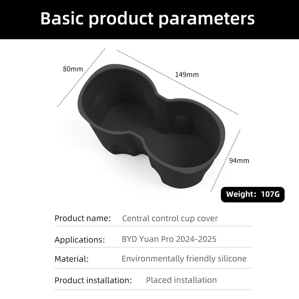 Для BYD Yuan Pro 2025 2025 Подстаканник Ящик для хранения Ударопрочный Центральный подлокотник Подставка для чашек Силиконовый Уборка Черный