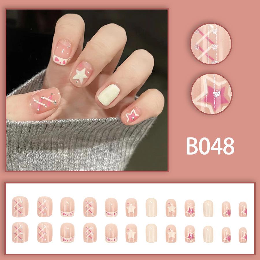 24 шт. Милые и сладкие квадратные ногти с коротким коровьим узором и звездами, королевские маникюрные наклейки для ногтей 24 шт.