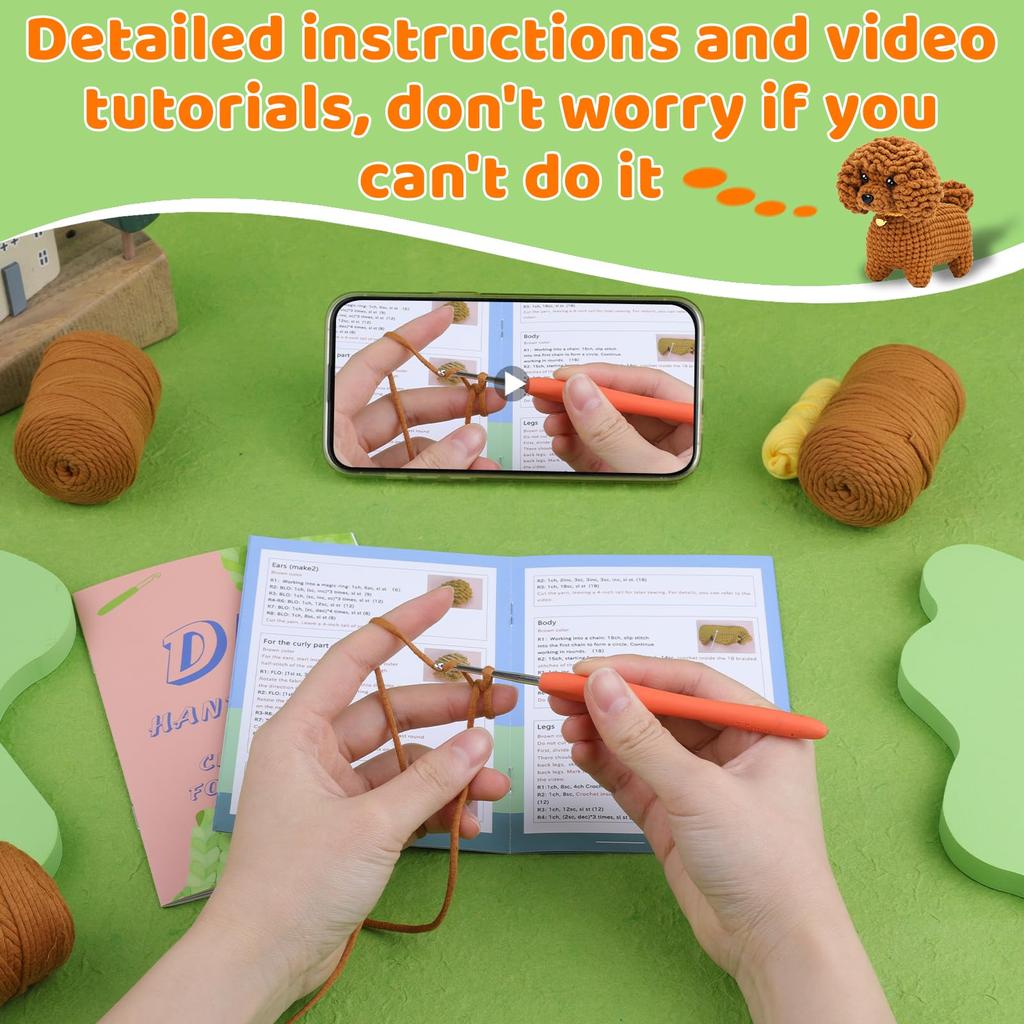 Набор для вязания крючком Fenrry для начинающих Собаки с пошаговыми видеоуроками Пряжа для вязания крючком Крючок для взрослых Подарки на день рождения