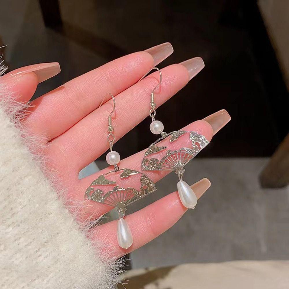 Серьги в форме веера в стиле ретро, креативные длинные серьги-кисточки, серьги-подвески с жемчугом для женщин — купить товар онлайн с бесплатной доставкой до всему миру!