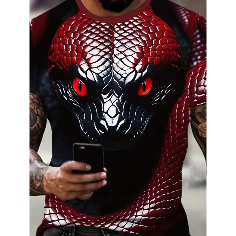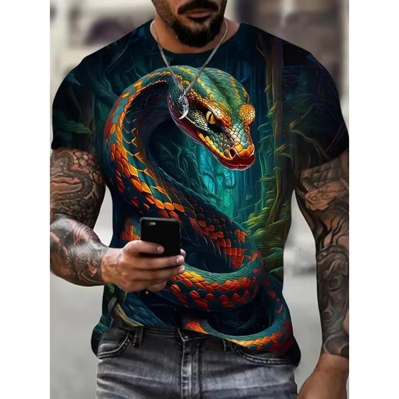 Модная 3D футболка с принтом змеи для мужчин, забавный рисунок животных, свободная футболка, летняя хип-хоп трендовая одежда, повседневные топы с круглым вырезом