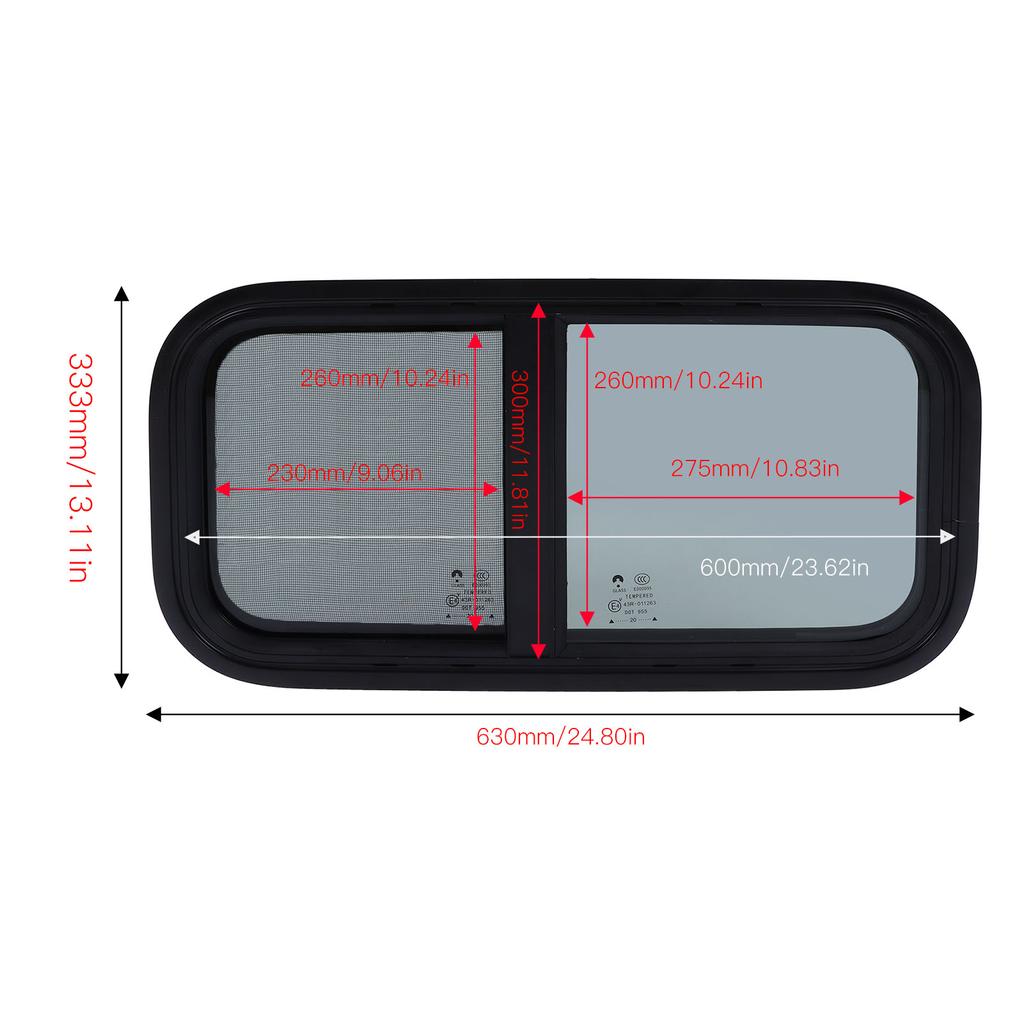 Окно для автофургона 600x300 мм с экраном, вертикальное, горизонтальное, раздвижное для кемперов, прицепов, строительных машин