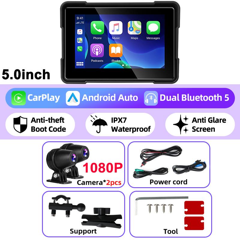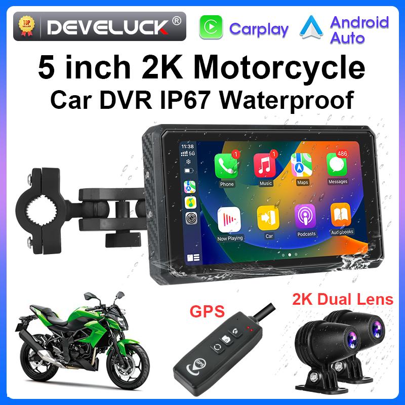 5'' Мотоцикл 2K HD DVR Портативный GPS Навигатор Беспроводной Carplay Android Auto IPX7 Водонепроницаемый Экран Bluetooth Двойной Объектив Moto