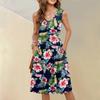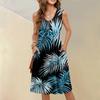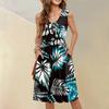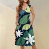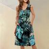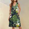 Женское повседневное модное сексуальное платье с V-образным вырезом, украшением на пуговицах, без рукавов, с принтом, бутоньеркой