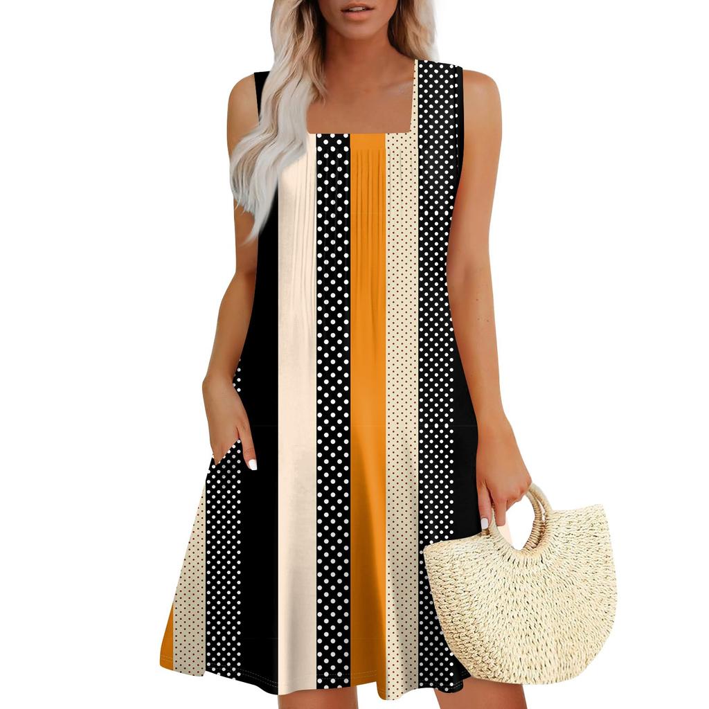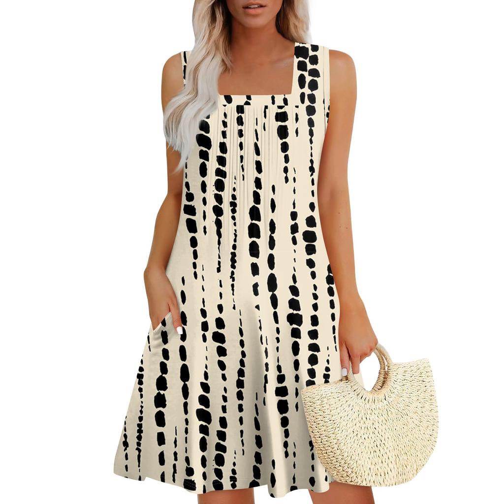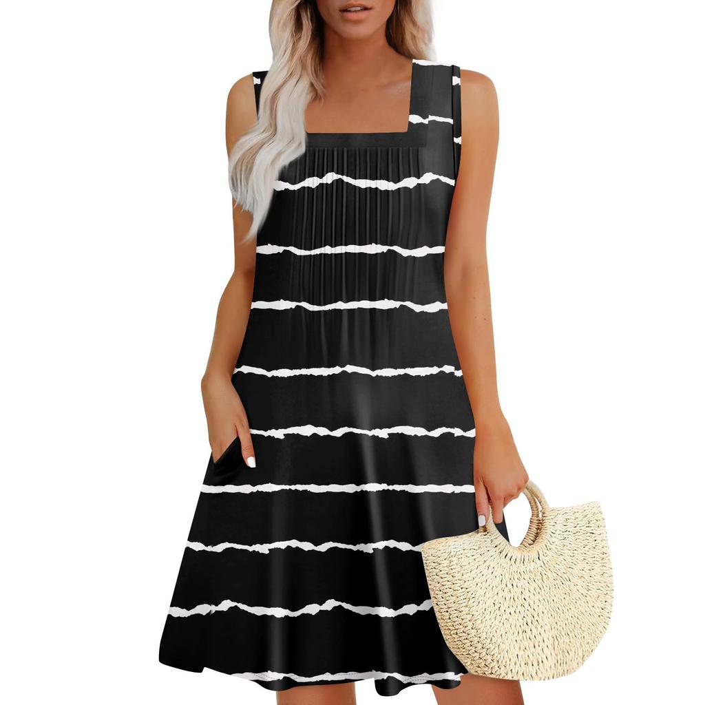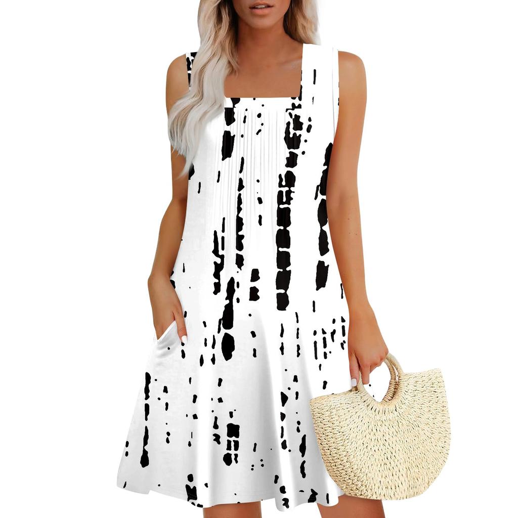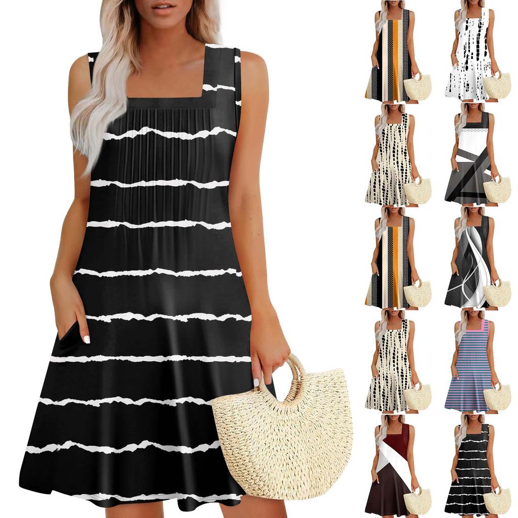 Женские летние платья Свободные сарафаны без рукавов Платье с карманами