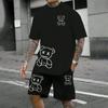 2025 Fun Bear Harajuku футболка мужская летняя свободная повседневная пара костюм для улицы шорты с коротким рукавом двухсекционный мужской летний костюм