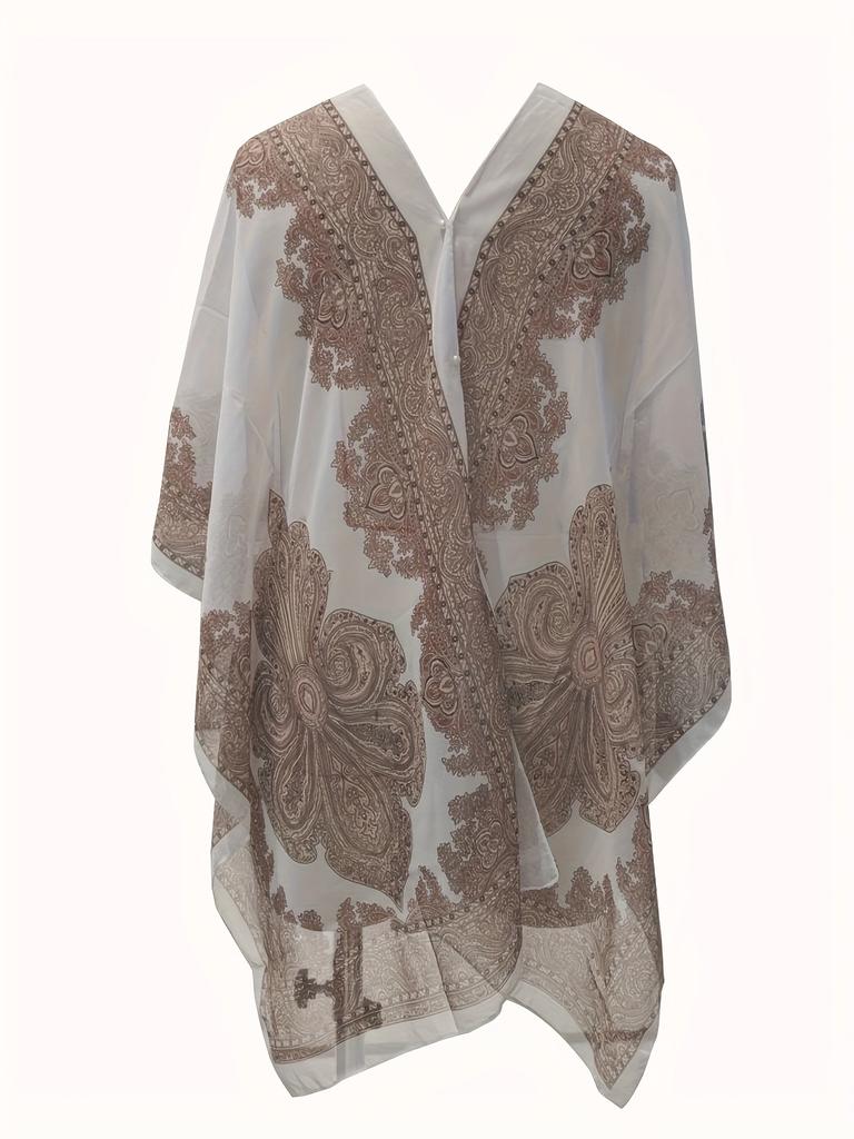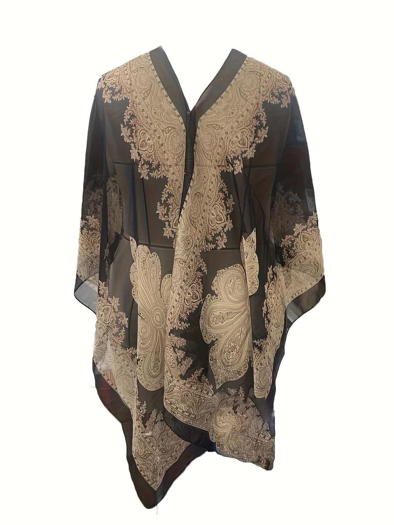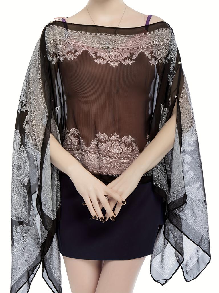 Элегантный топ с V-образным вырезом, полупрозрачная шаль с солнцезащитным кремом, пляжный шарф, шифоновый платок с принтом
