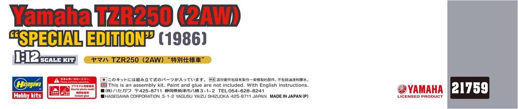 Пластиковая модель Hasegawa Yamaha 21759 1/12 TZR250(2AW)