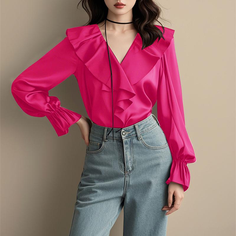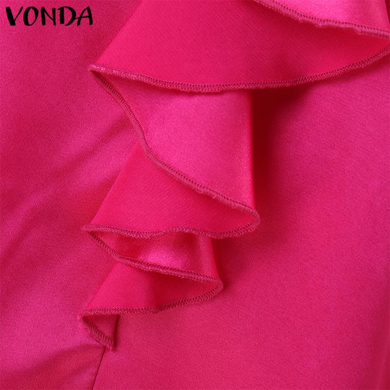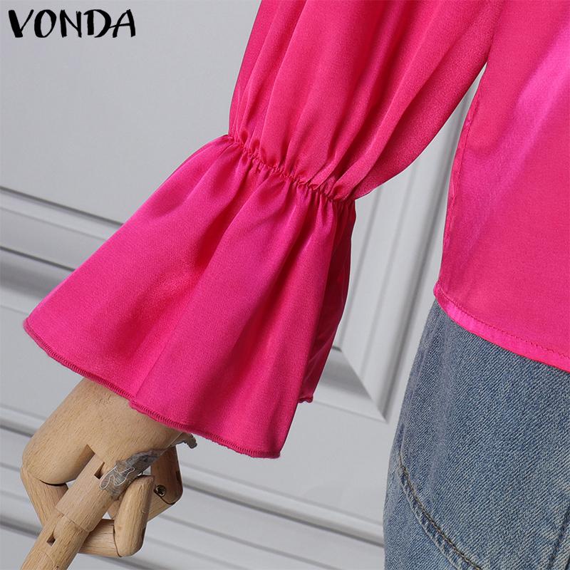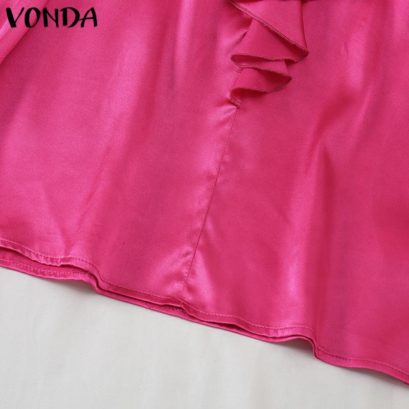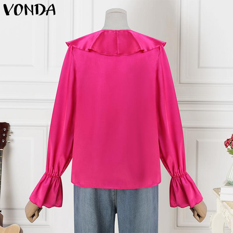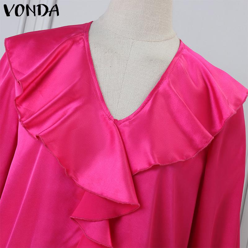 VONDA Женские элегантные однотонные блузки с длинным рукавом и оборками