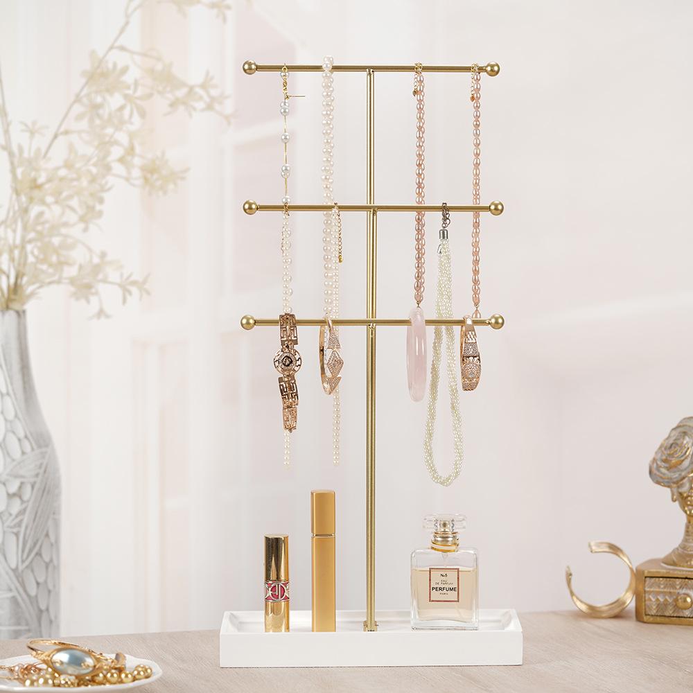 Подставка-органайзер для ювелирных изделий: 18,3-дюймовая прочная вешалка для ожерелий, сережек, браслетов, золотая и черная