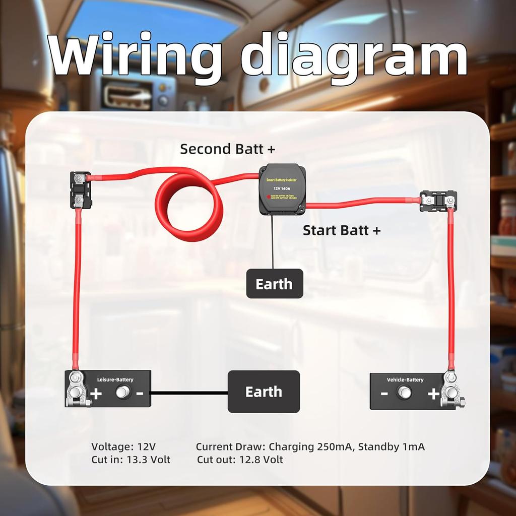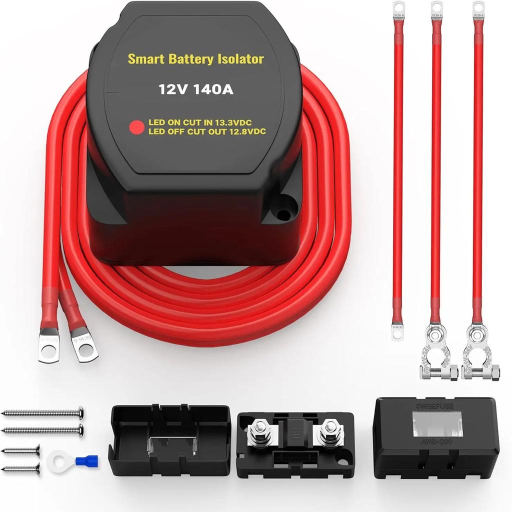 Комплект для двойного аккумулятора 12 В 140 А, водонепроницаемое реле с чувствительным напряжением, интеллектуальный двойной аккумуляторный изолятор для морского грузовика, квадроцикла, UTV, автофургона