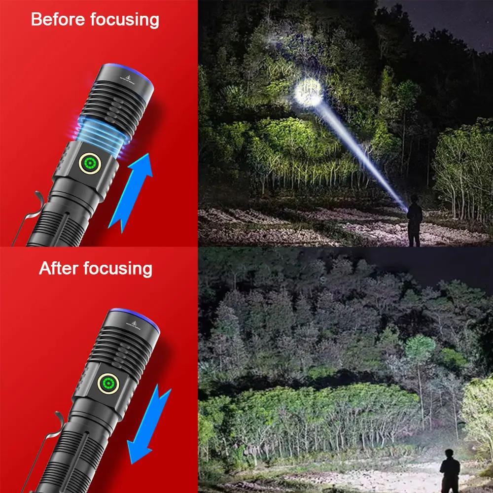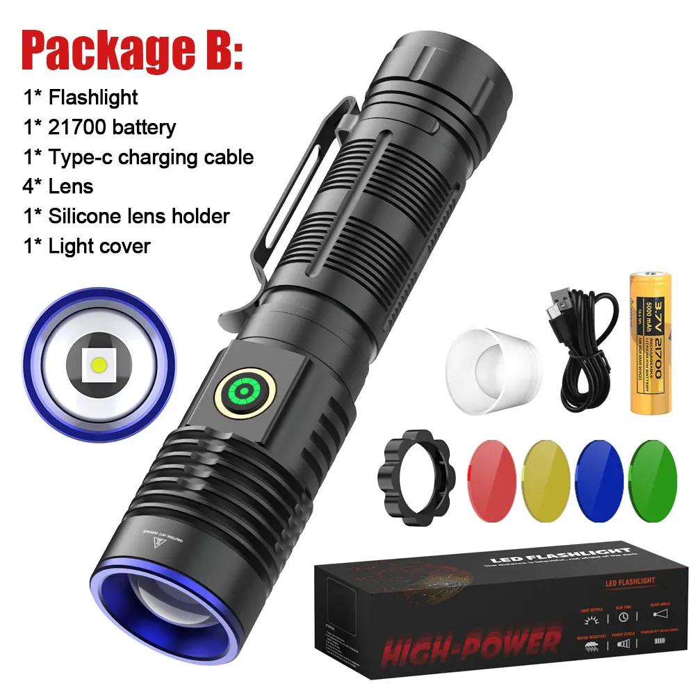 Tactical Flashlight Green Red Powerful LED Flashlight Five Colors Bright Spotlight Long Range Zoomable Emergency Torch Outdoor