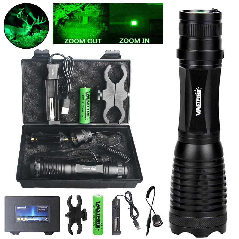 LED Tactical Flashlight Zoom White/Red/Green Light Predator Light Focus Adjustable Torch for Hunting Fishing Coyote Hog Varmint