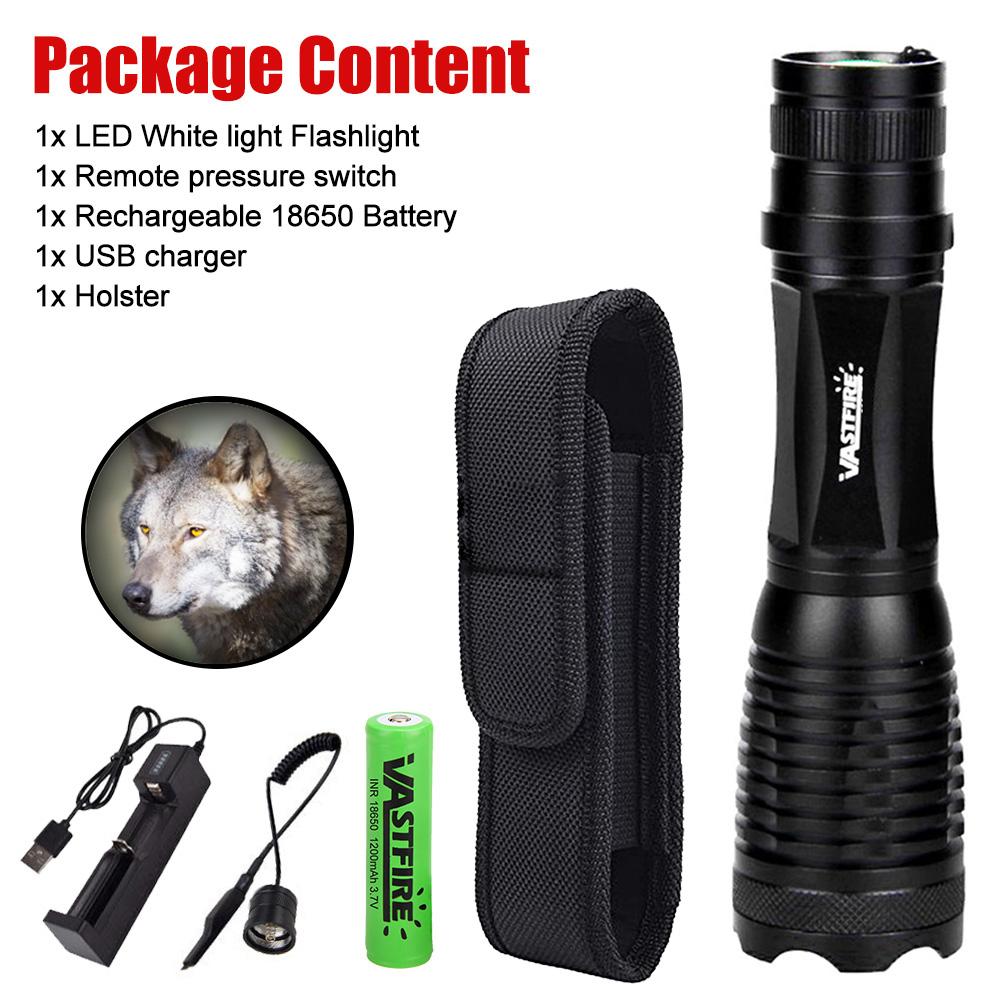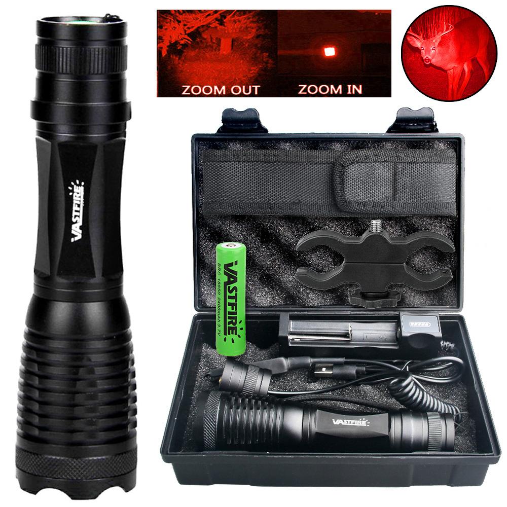 Hunting Flashlight Zoomable White/Red/Green Light Tactical Flashlight LED Light With 18650 Battery+Charger+Pressure switch