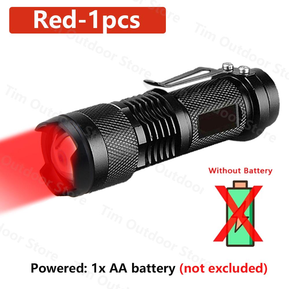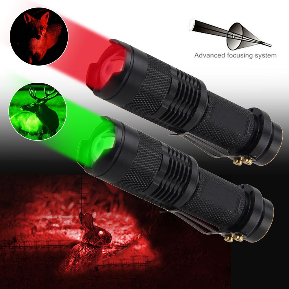 Mini LED Flashlight Green/Red Zoomable Tactical Torch Lamp Hunting Portable Torch Flash light Adjustable Flashlight for Hiking