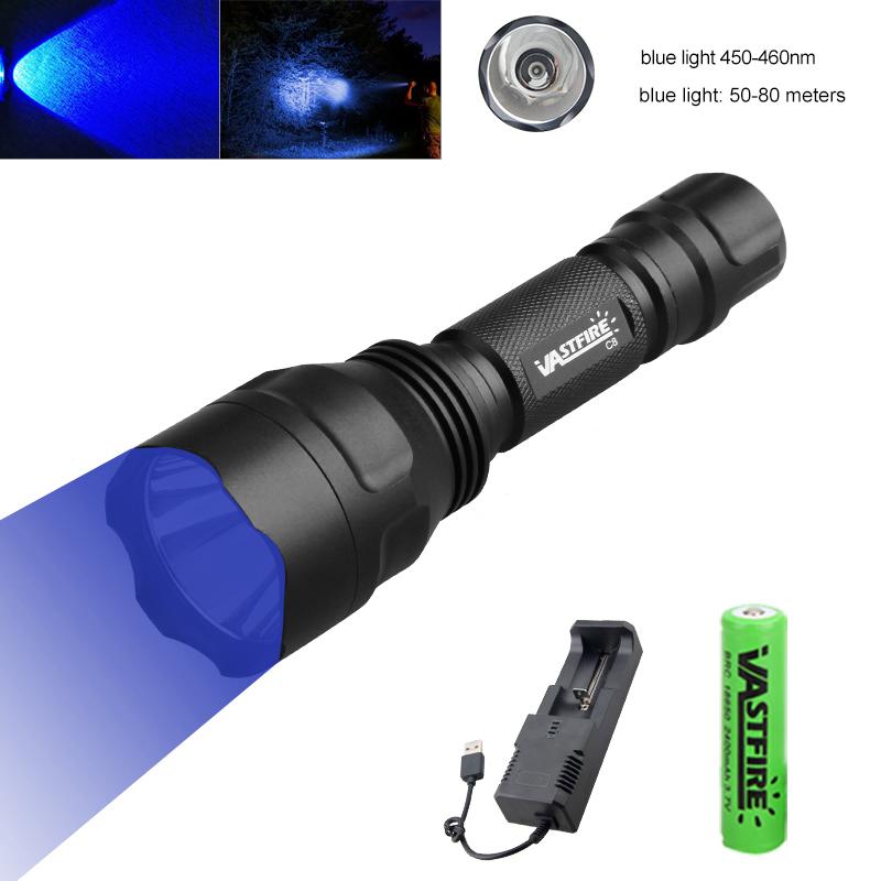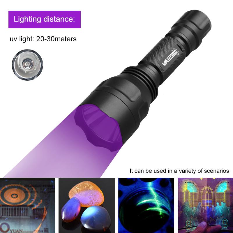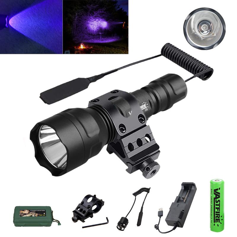 LED Flashlight Hunting UV 395NM/Blue Light Torch Professional Tactical Night Scout Light Set Fish Light USB Rechargeable Torch
