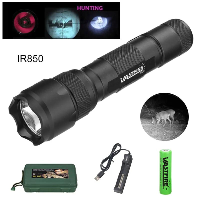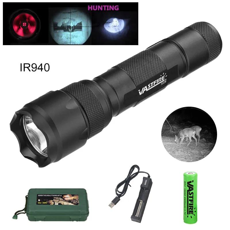502B Infrared Flashlight IR 850nm/940nm Night Vision LED Tactical Flashlight IPX6 Waterproof Torch Use 18650 Hunting Lantern