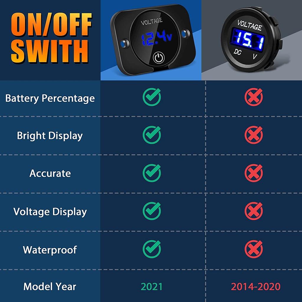DaierTek 12V Touch Switch Digital Display DC 12V 24V Car Voltmeter LED Digital Display Waterproof Voltmeter Panel for Marine
