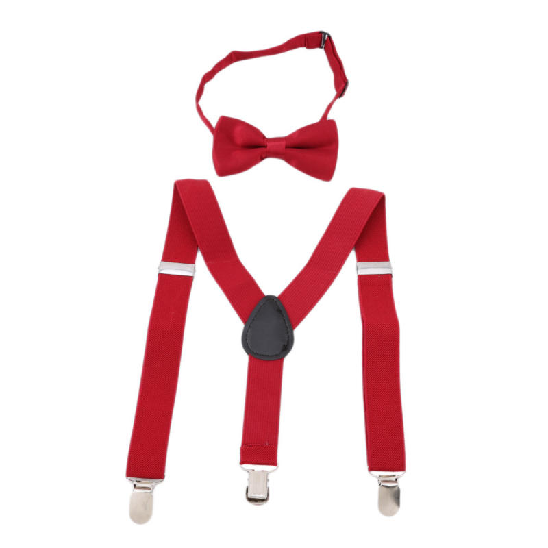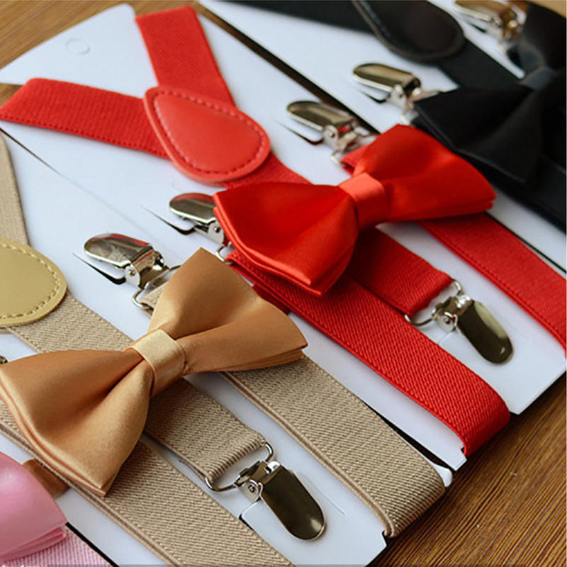 Детские однотонные подтяжки на клипсе для мальчиков и девочек, эластичные регулируемые подтяжки с милым галстуком-бабочкой