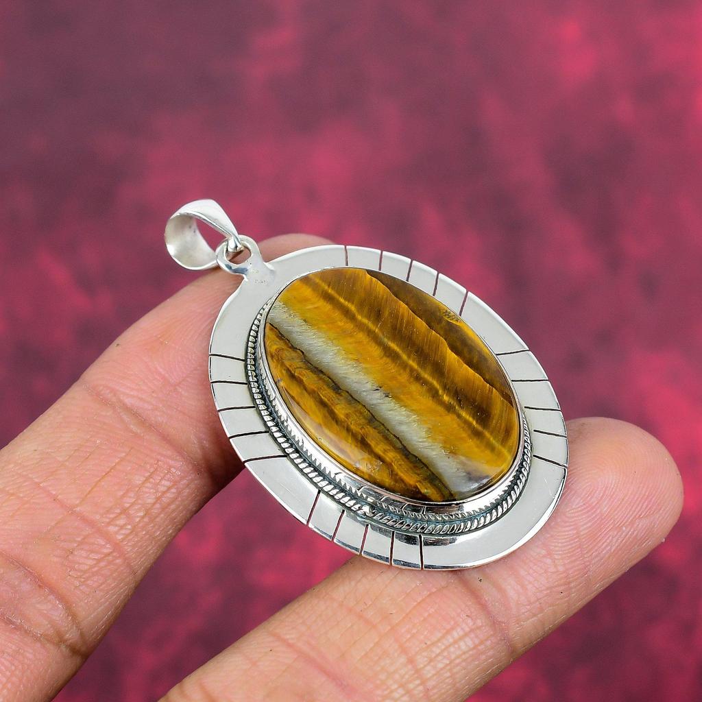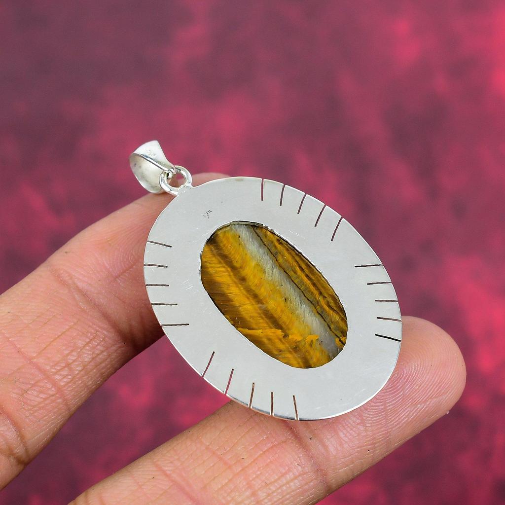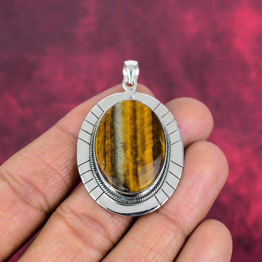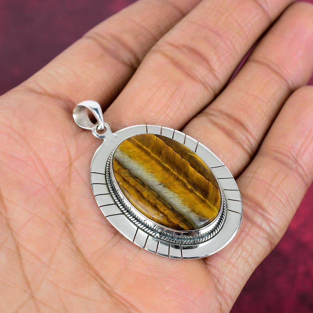Твердый кулон из стерлингового серебра 925 пробы с тигровым глазом, кулон из драгоценного камня ручной работы, подарок для мамы, антикварные ювелирные изделия