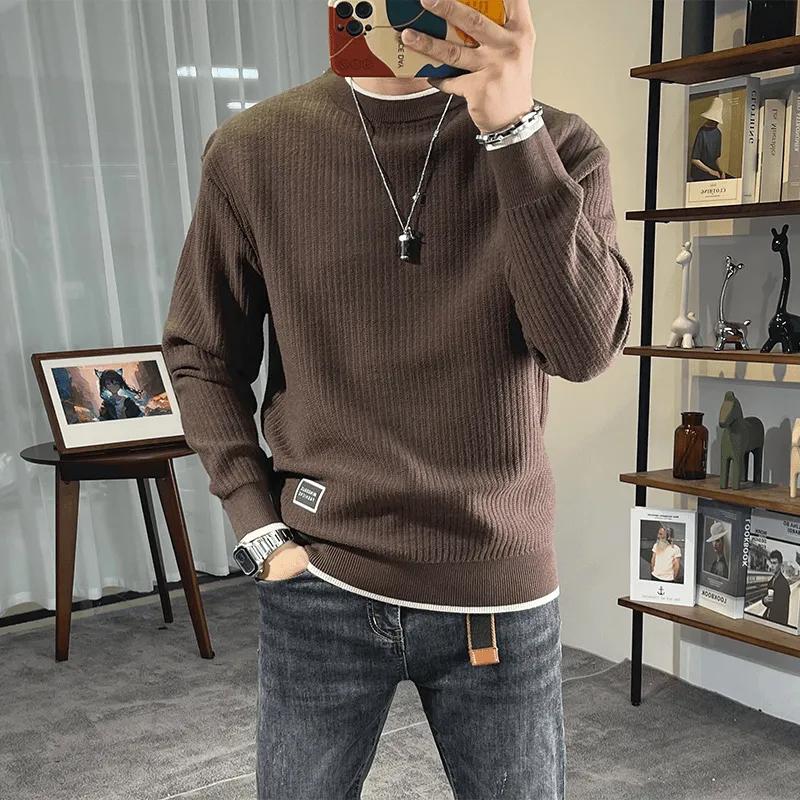 Круглый вырез мужской свитер Утолщенный свитер Осенне-зимняя мужская одежда Теплый универсальный свитер Тонкий модный брендовый хлопковый трикотаж
