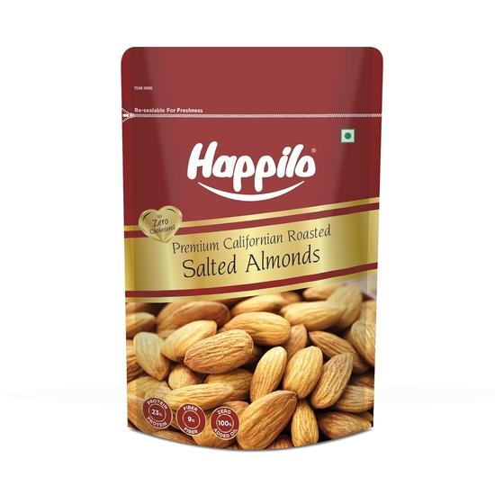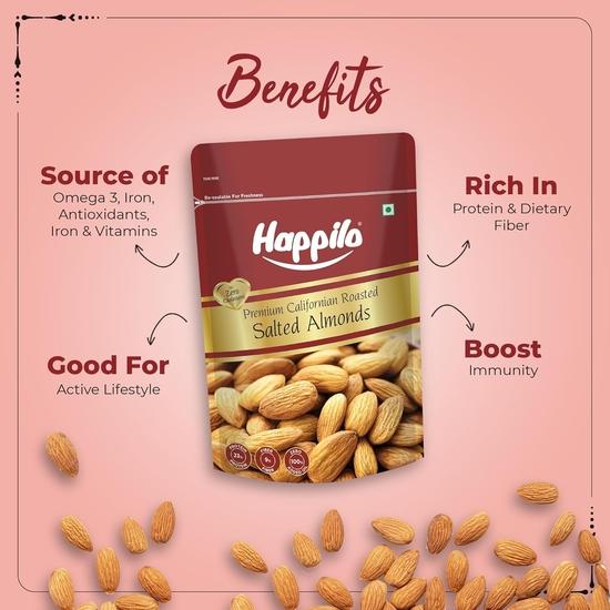 Калифорнийский миндаль Happilo Premium, жареный и соленый, 200 г | Сухофрукты Бадам | Суперполезные хрустящие орехи | Богаты витаминами и минералами