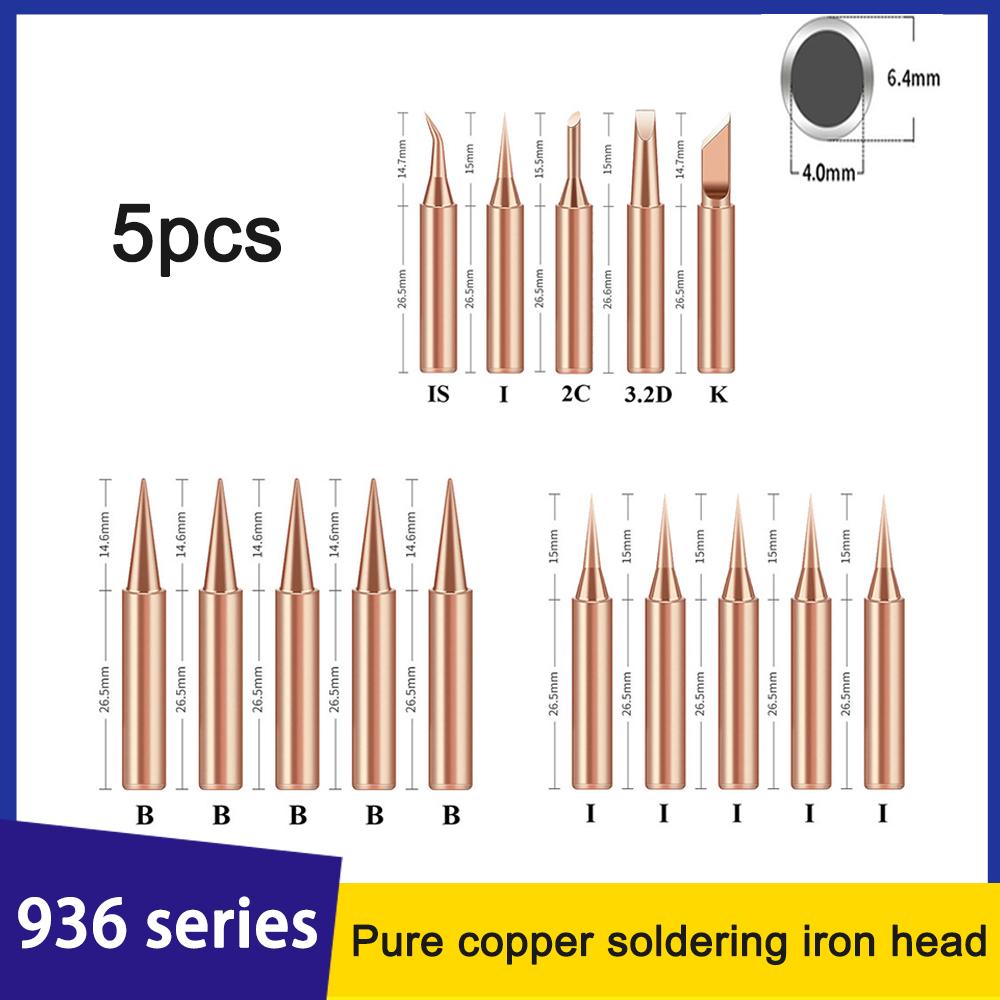 5 шт. 936 с внутренним подогревом, насадка для сварки из чистой меди, насадка для паяльника, сварочная головка, чистая медь 900M 2,4 мм/3 мм/4,7 мм