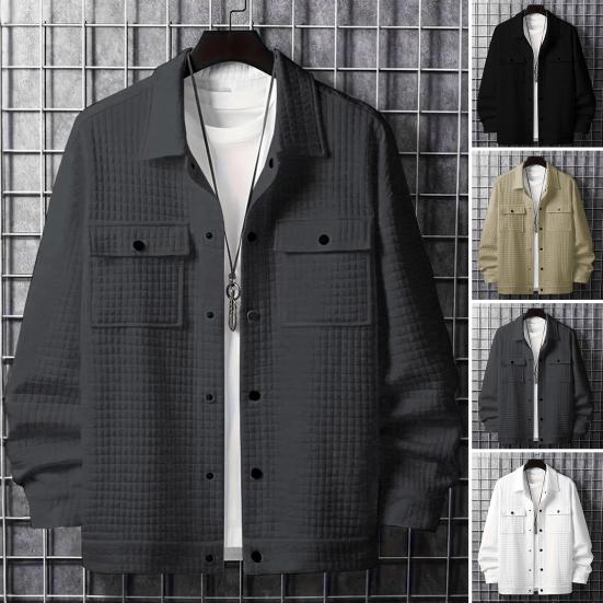 Эта куртка с лацканами, длинными рукавами и двумя карманами с клапанами на груди идеально сочетается с повседневными брюками, джинсами или спортивными брюками.. Изготовленный из высококачественной полиэфирной ткани, однотонный дизайн отличается модной универсальностью..