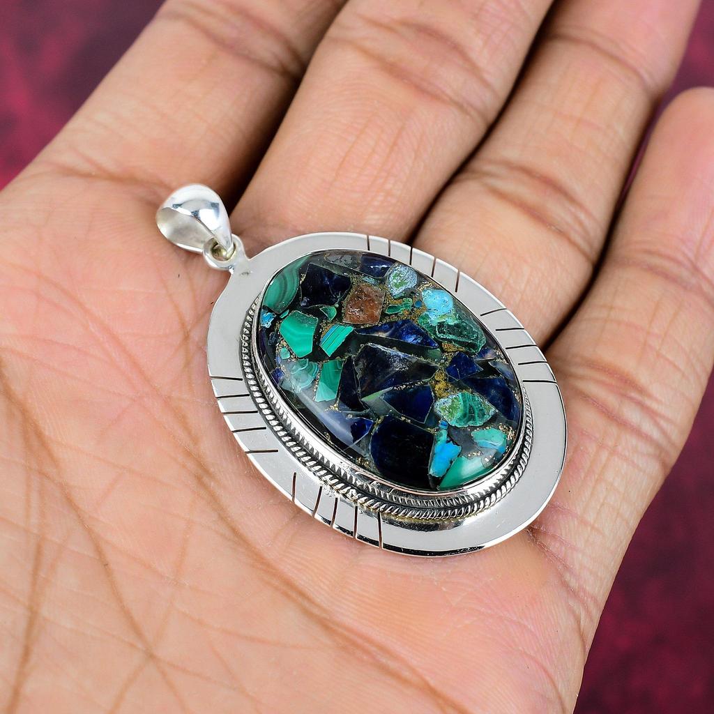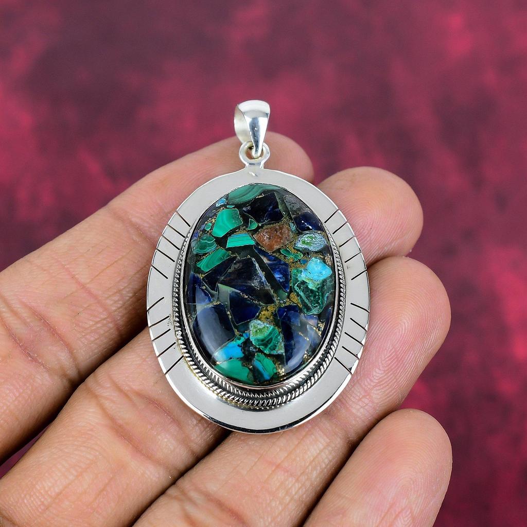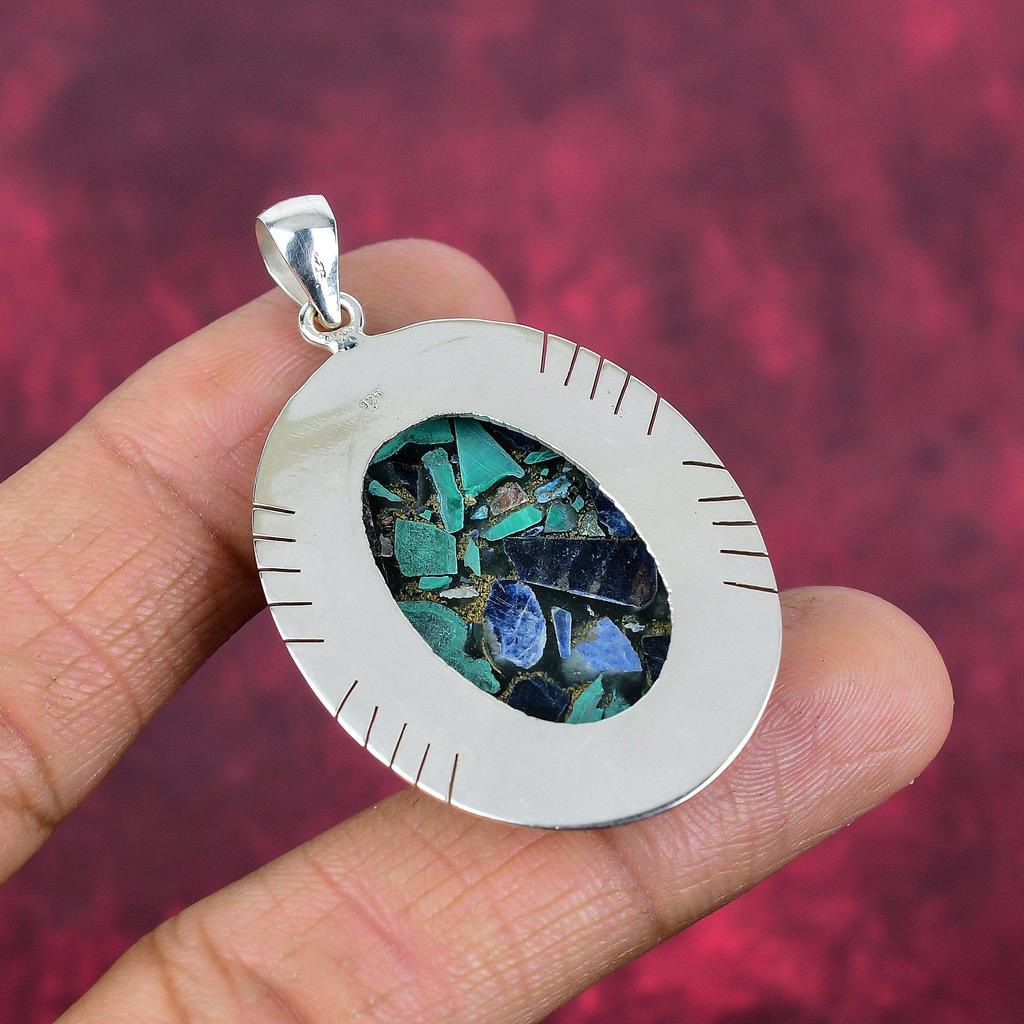 Подвеска из меди и малахита, серебряная подвеска 925 пробы с драгоценными камнями, изумительная подвеска ручной работы, подарок для нее