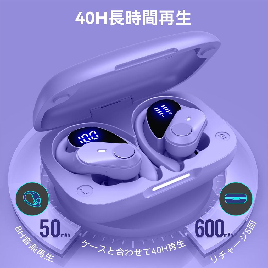 🎵 [Беспроводная зарядка и светодиодный дисплей] Беспроводные наушники поставляются с зарядным чехлом большой емкости 600 мАч, а также поддерживают два способа зарядки.: QI и Тип-C. 🔋Наслаждайтесь музыкой до 8 часов при полной зарядке. С кейсом можно играть 40 часов. Поскольку аккумулятор долговечен, вы можете использовать его не только для поездок на работу или в школу, но и для дальних поездок, например, на самолетах и в экспрессах Синкансэн, не беспокоясь о том, что аккумулятор разрядится.. 🌟Он также оснащен светодиодным дисплеем, что придает ему ощущение высокой четкости и роскоши. Уровень заряда батареи кейса отображается в цифрах на левом дисплее, а состояние зарядки наушников и заушных крючков Bluetooth отображается на 4-шкальном светодиодном дисплее, что позволяет легко увидеть его с первого взгляда.. является.