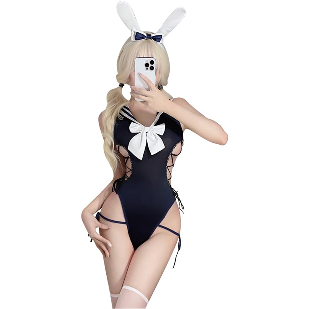 Костюм зайчика, темно-синий, с открытой грудью, матросская форма, школьный купальник, с чулками, галстуком-бабочкой, сексуальный косплей, белье зайчика наоборот, тренировка кролика, соблазн