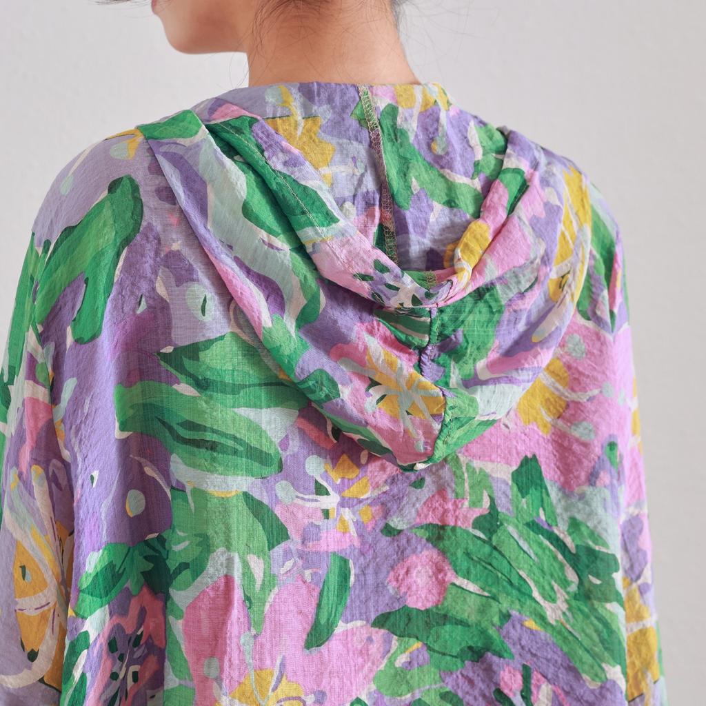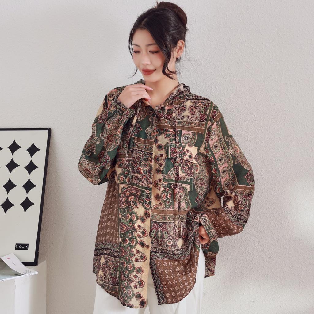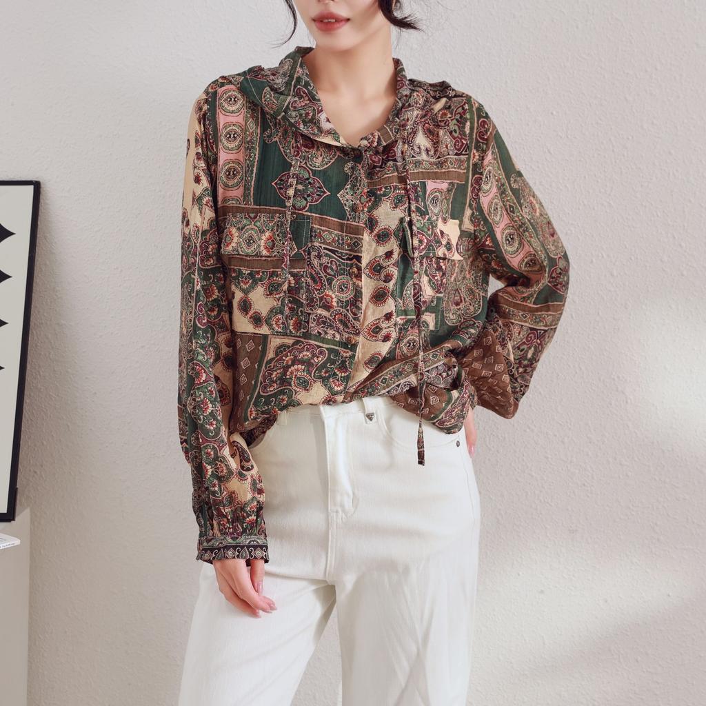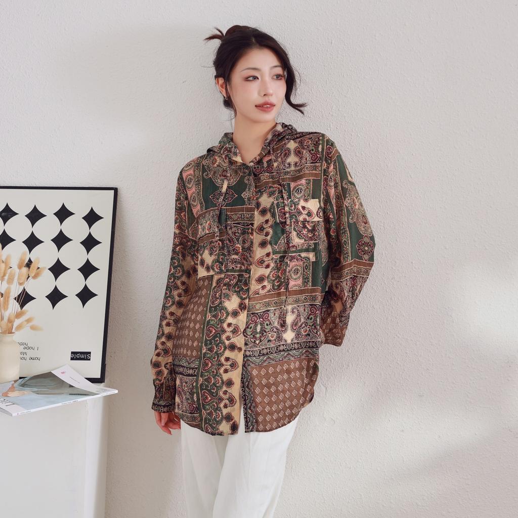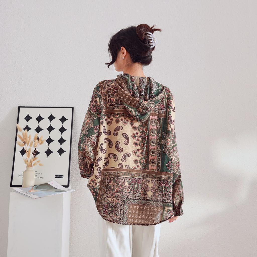 DIMANAF Весна 2025 Лето Льняная Рубашка С Длинным Рукавом С Капюшоном Женская Блузка Модные Цветочные Топы Свободные Новые