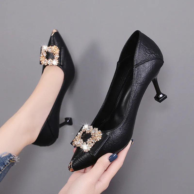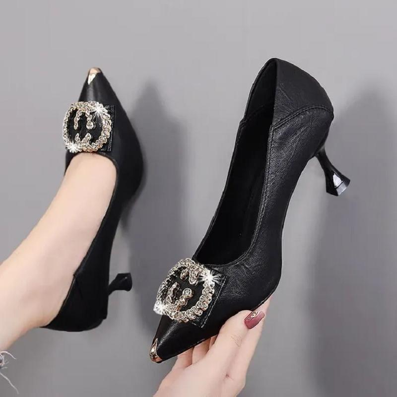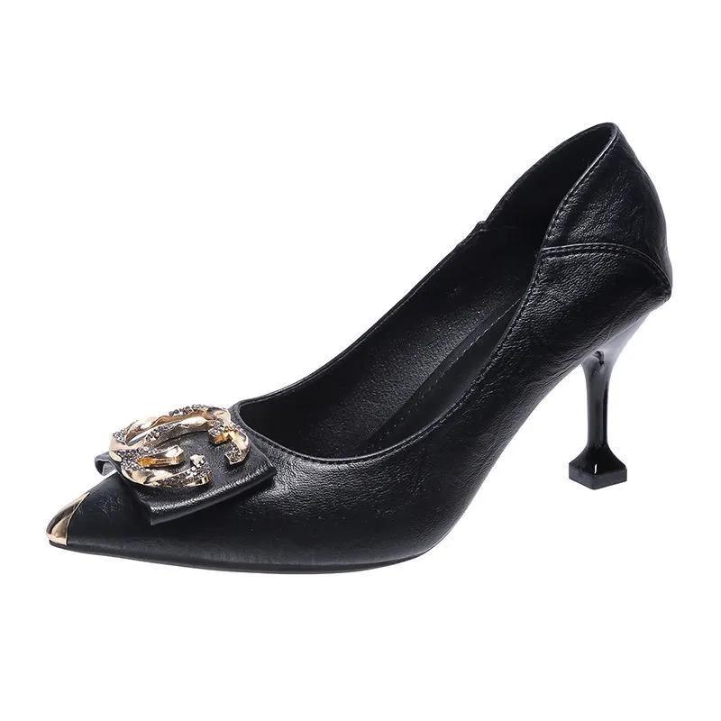 Женские классические туфли с острым носком из мягкой искусственной кожи на весну и лето на шпильке для сексуальных вечеринок и офиса, туфли-лодочки Ga24