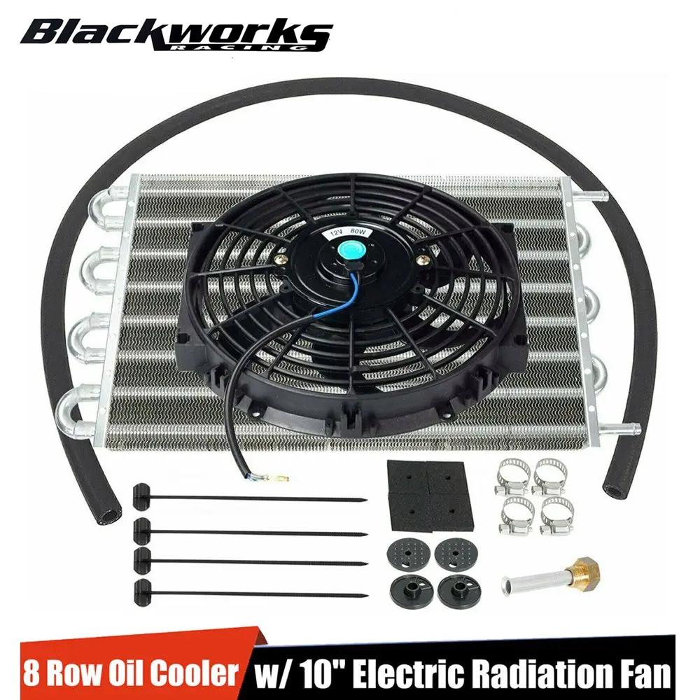 Универсальный 8-рядный радиатор трансмиссии, масляное охлаждение + 10-дюймовый 12-вольтовый автомобильный кондиционер, тонкий электронный вентилятор, комплект охлаждения, алюминий