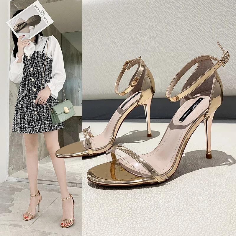 Летние сандалии женские модные тонкий каблук в одну линию с пряжкой на ремешке европейские и американские туфли на высоком каблуке — купить товар онлайн с бесплатной доставкой по всему миру!