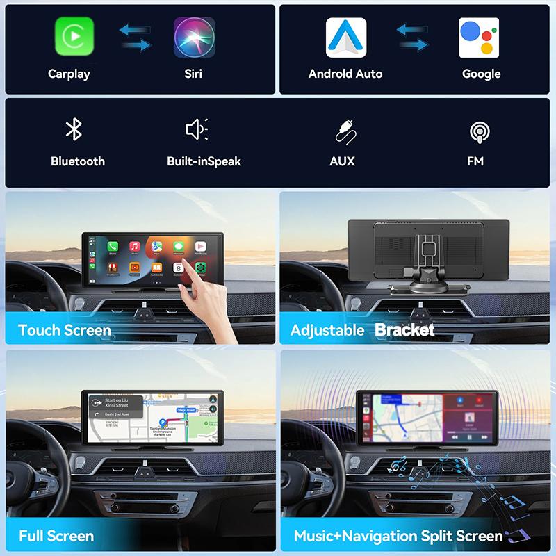 10,26-дюймовый портативный беспроводной экран Carplay HD камера заднего вида автомобильный радиоприемник DVR MP5 BT мультимедийный видеоплеер Android Auto