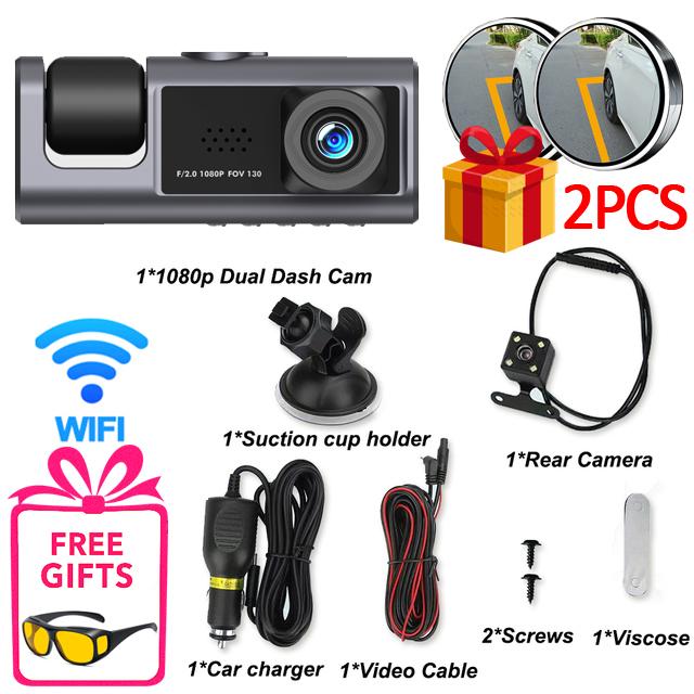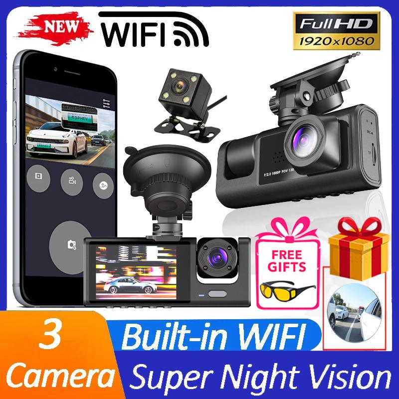 Автомобильный видеорегистратор 1080P с 3 камерами, видеорегистратор для автомобилей, WIFI, камера заднего вида для автомобиля, черный ящик, автомобильный аксессуар с подарком