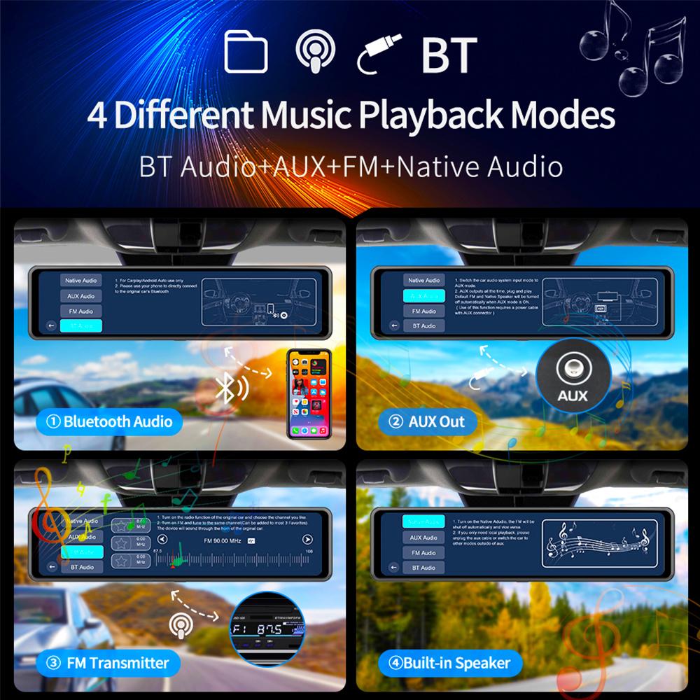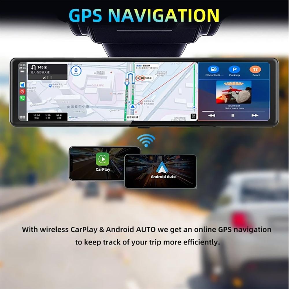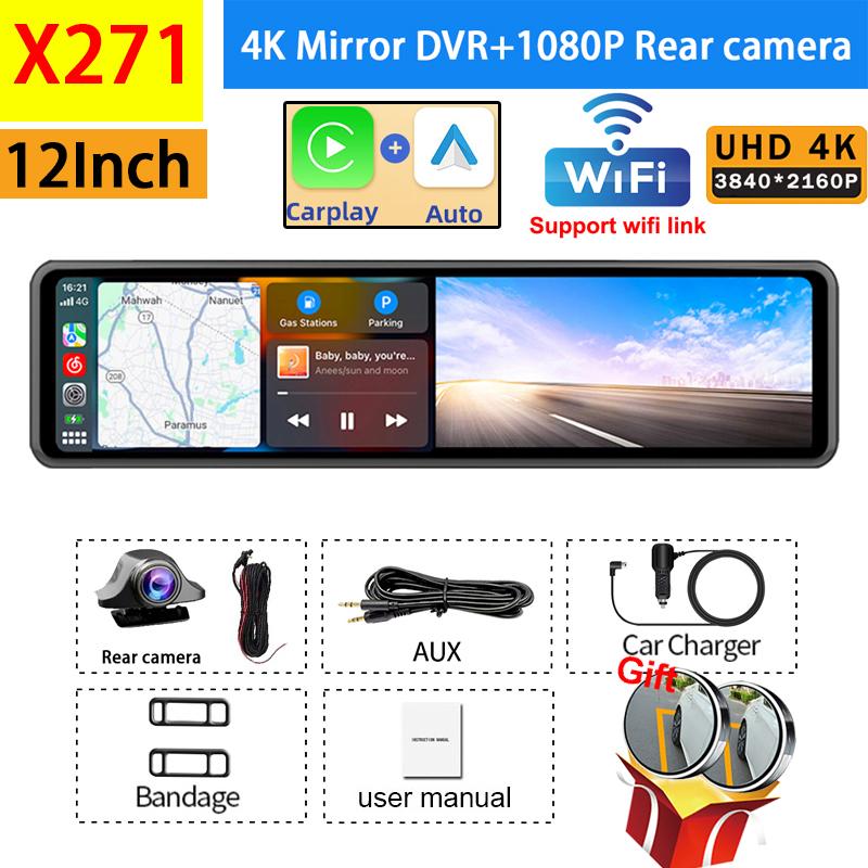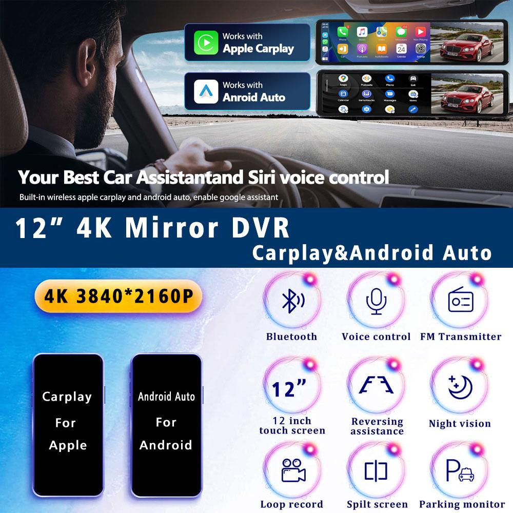 Автомобильный видеорегистратор 12” 4K Carplay Android-Auto Dash Cam Dual Lens Video Drive Recorder Stream Mirror Dashcam Camera 5G Wifi GPS Bluetooth FM