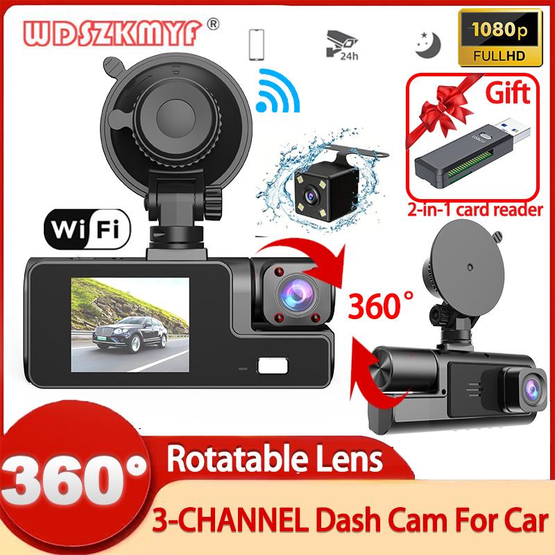 3-канальный автомобильный видеорегистратор, видеорегистратор, видеорегистратор для автомобилей, WIFI 1080P с камерой заднего вида для автомобиля, ночное видение, автомобильный аксессуар