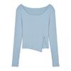 Однотонная футболка женская короткая нерегулярная тонкая открытая с длинным рукавом с базовой рубашкой осенняя тонкая верхняя тенденция