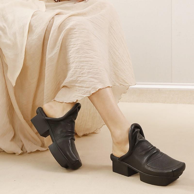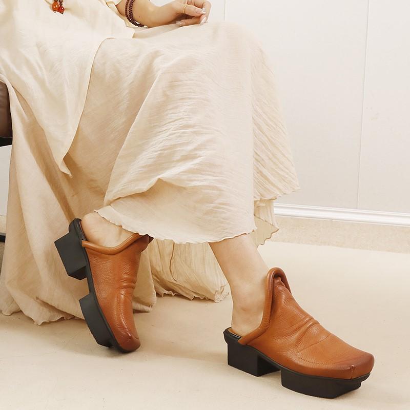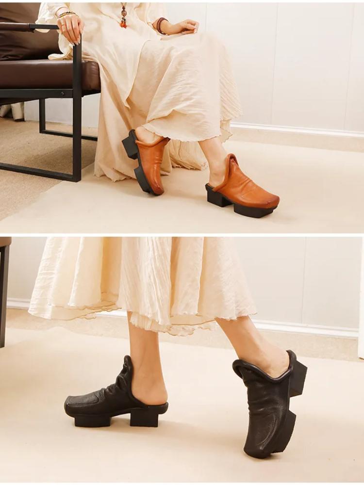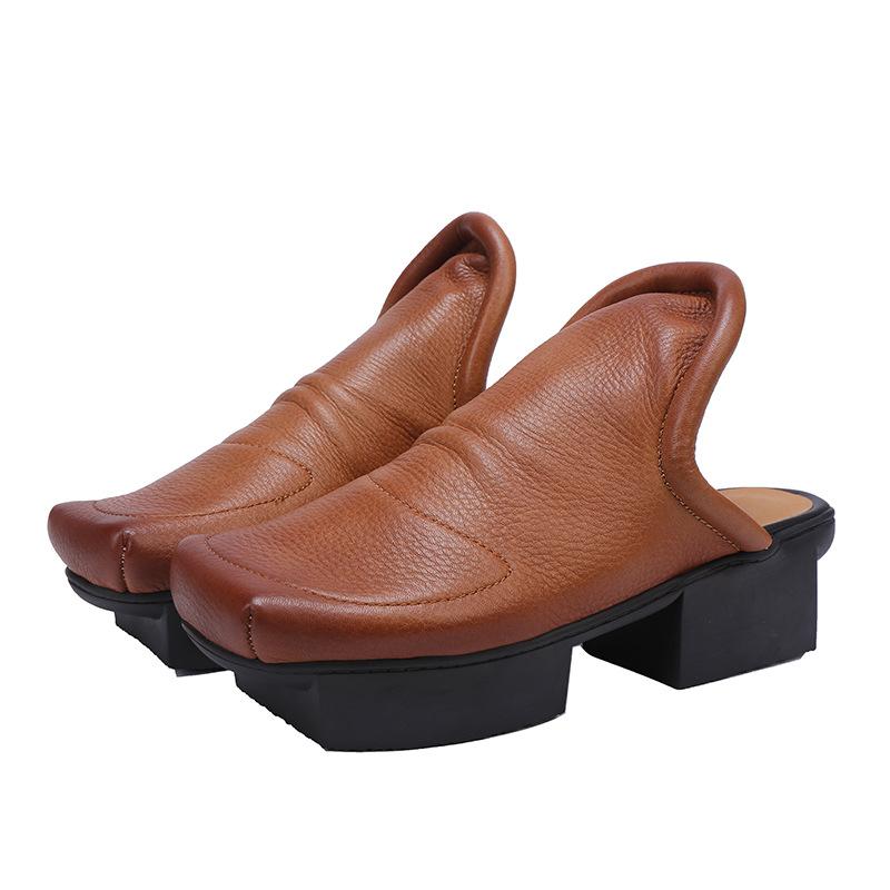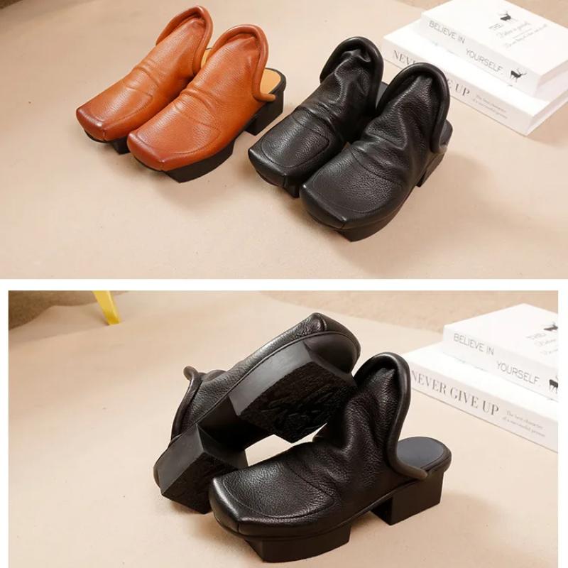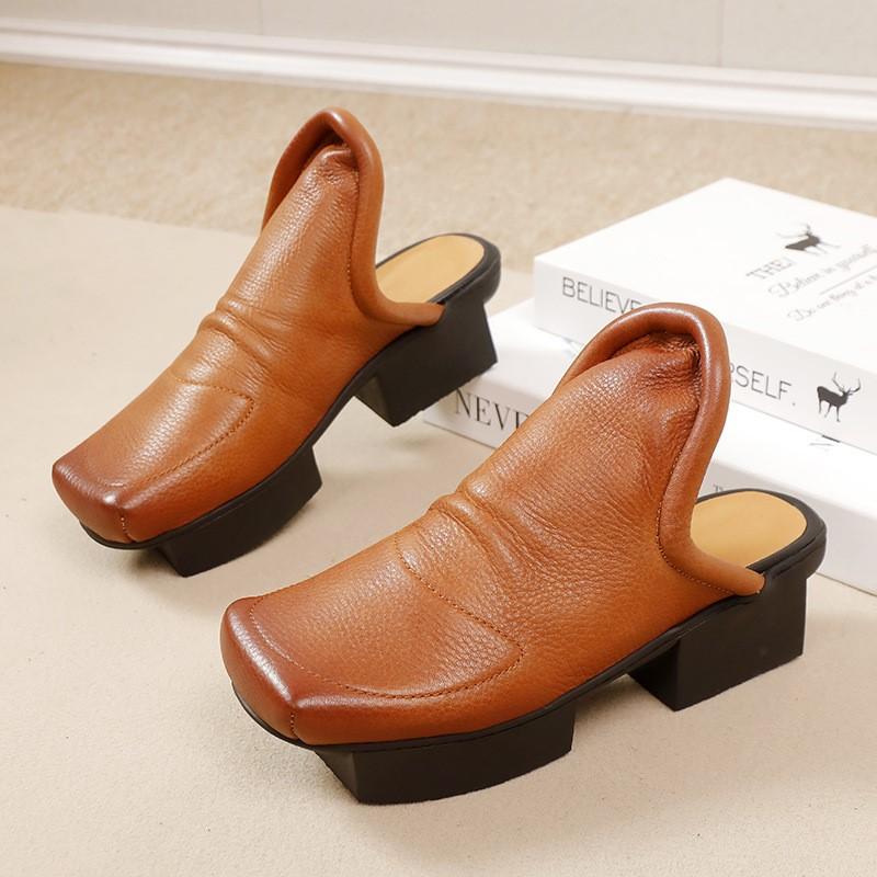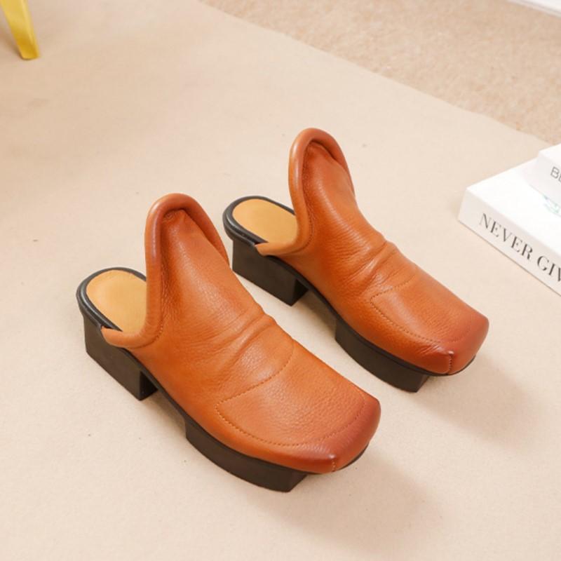 Johnature Женские туфли из натуральной кожи на среднем каблуке, модные тапочки с квадратным носком