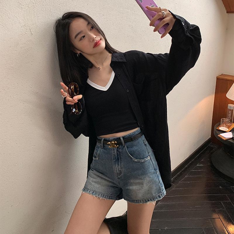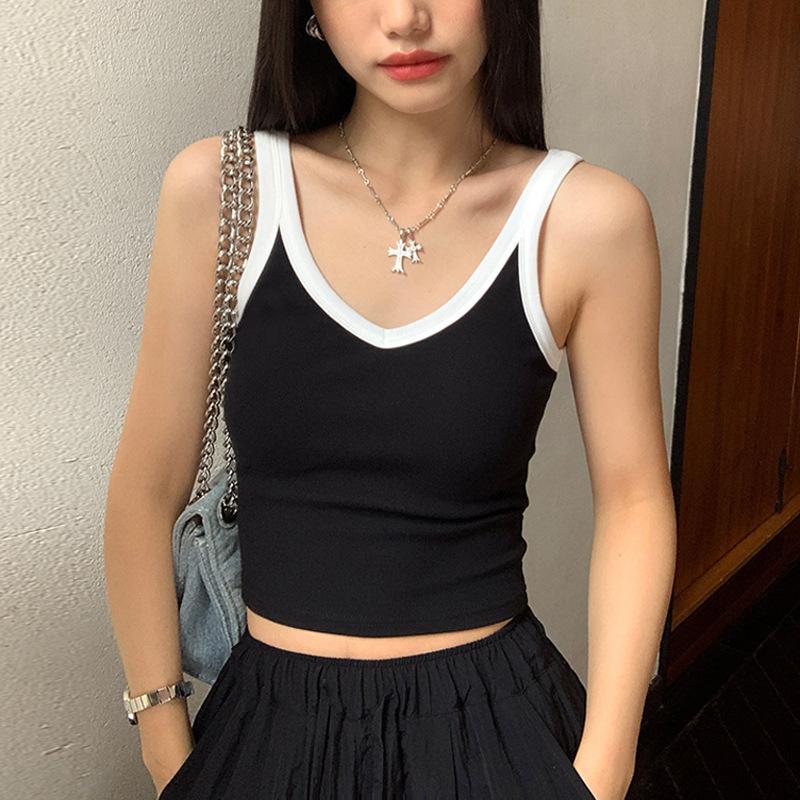 Высококачественная короткая женская верхняя одежда на бретелях, летняя новинка, контрастный цвет, высокая талия, V-образный вырез, без рукавов, нижний топ