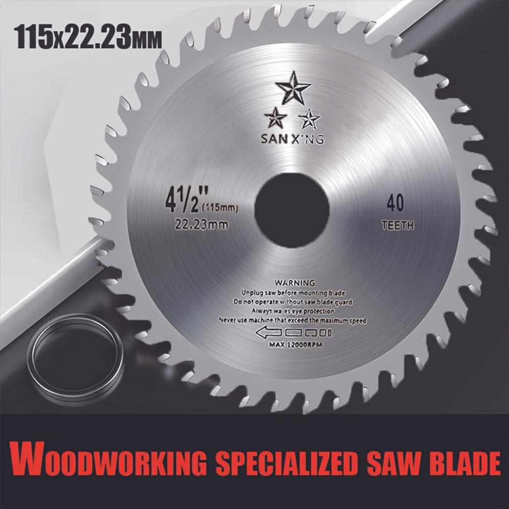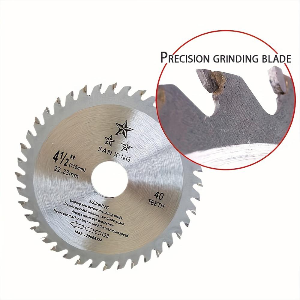 Дисковая пила для резки дерева 4,5 дюйма с 40 зубьями и твердосплавными напайками для резки твердой и мягкой древесины с осью 22,23 мм
